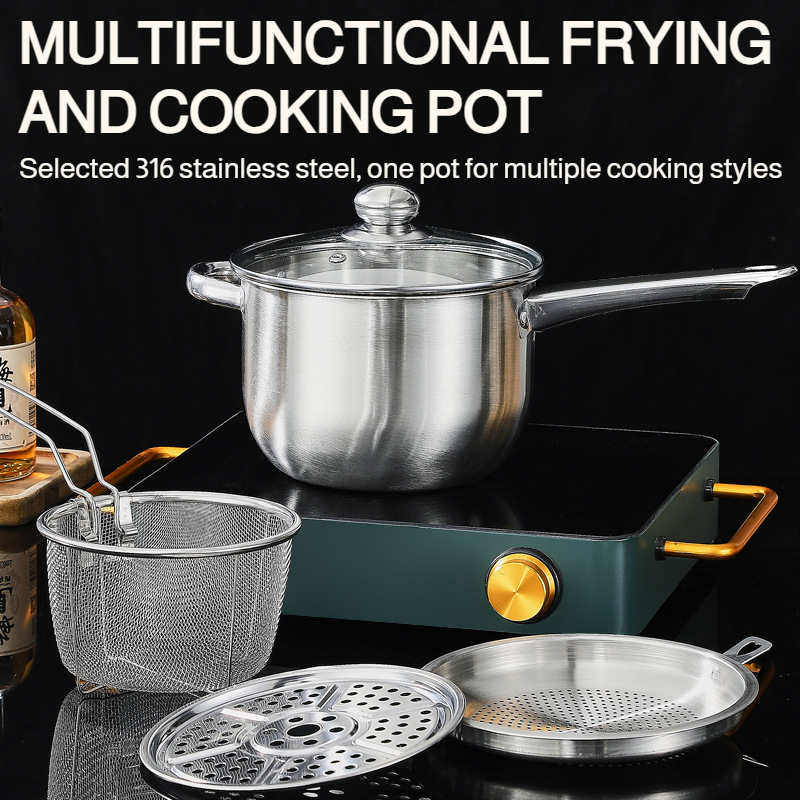 Color: Oil pot & lid & frying basket & steaming plate & filter (5-piece set)